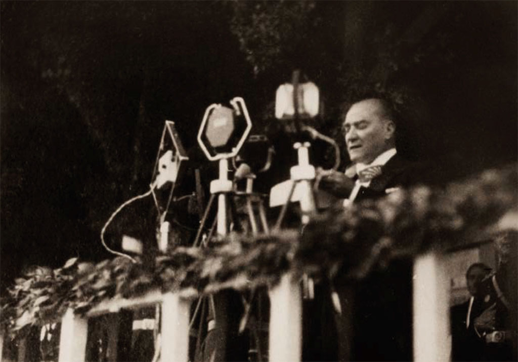 Başkomutan Mustafa Kemal Paşa, Millet Bahçesi’nde Mersinlilere hitap ederken, Mersin, 17 Mart 1923.